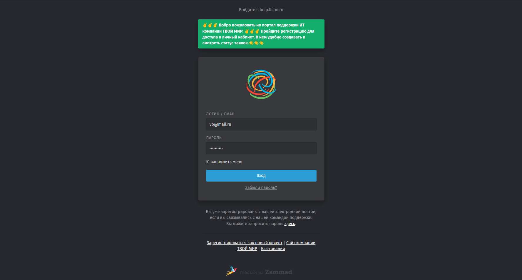 4. После перехода по ссылке, вводим свои учетные данные указанные на шаге 2, ставим галочку "Запомнить меня", и жмем кнопку "Войти". На этом регистрация завершена и вы можете пользоваться системой.